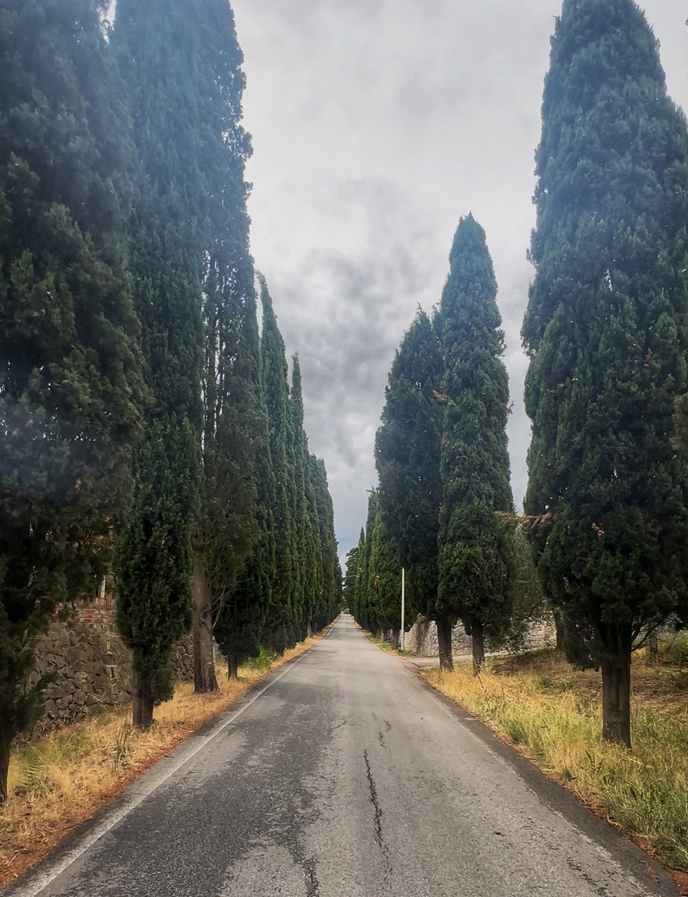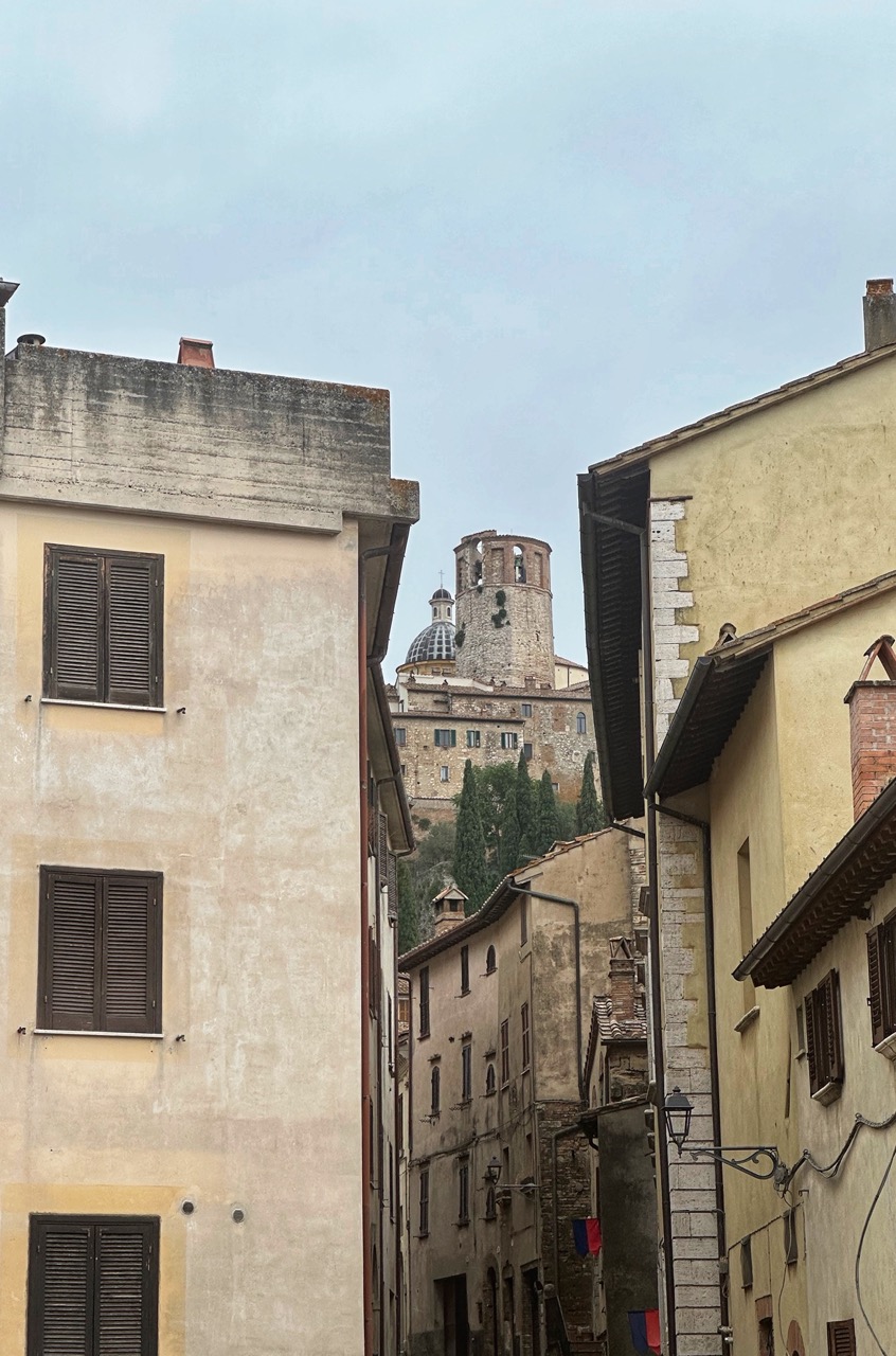 Umbria wordt Toscane. Ik zie het provinciebordje en meteen ook cipressen. Mijn route is recht-toe-recht-aan, dus de mooie paadjes die ik links en rechts wel zie liggen moet ik helaas aan me voorbij gaan. De doorgaande weg is de mijne, minder mooi, wel efficient. Gelukkig kom ik af en toe door prachtige dorpjes om toch nog het Toscaanse gevoel een beetje mee te krijgen.