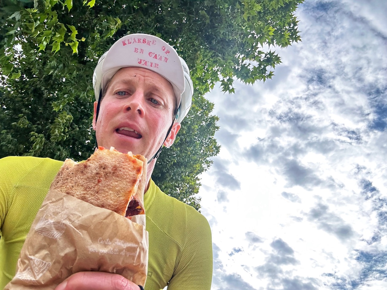 Het Arno dal is druk en ruim vijftig kilometer moeten we door de spits rijden. We mogen niet samen rijden, maar komen door de vele stoplichten ook niet van elkaar af. Er volgt nog een verkeersruzie met een automobilist die vindt dat we op het fietspad vol glas moeten rijden. Kortom, dit stuk is feest. Gelukkig is het niet Alex zijn dag, maar wel de mijne en probeer ik me er niets van aan te trekken. Dat lukt natuurlijk niet, maar door mezelf op deze manier voor de gek te houden kom ik er aardig doorheen.