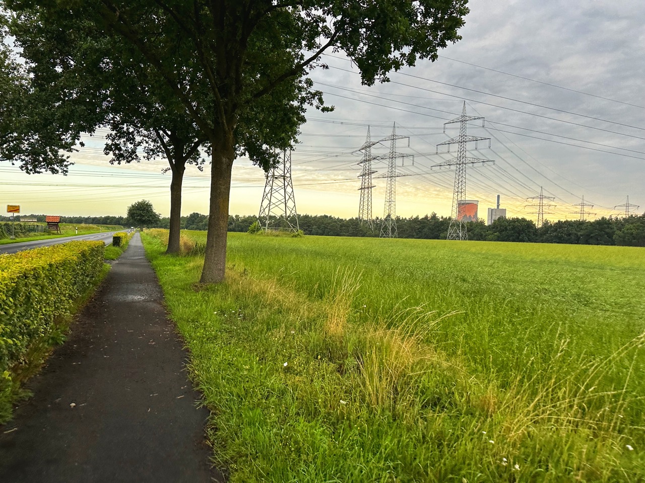 Na de stad volgen lange rechte wegen. Met uitzondering van het stuk rondom Haler-Feld-Vogelpohl dat wat relief heeft is het vooral lang rechtdoor met tegenwind. Dorpjes zijn er nauwelijks te bekennen, maar omdat er geen kip op de weg is kan ik de rijbaan mooi gebruiken. Deze ligt er in tegenstelling tot de fietspaden goed bij, wat minder energie kost dan rijden over een hobbelend fietspad waar je elke meter moet scannen voor kuilen en oneffenheden. Zo rijd ik een aantal uur door tot het net voor Haselünne drukker wordt en ik me veiliger waan op de hobbelende fietspaden. Niet lang hiervoor is het licht geworden en het wordt tijd om te ontbijten. Aan ontbijt denken deed ik al een tijdje, maar nu pas doet zich de gelegenheid aan. Bij de Netto van Haselünne zie ik dat de bakker open is en ik sla mijn slag. De bakker en bakkersvrouw blijken Nederlanders te zijn die naar Duitsland zijn vertrokken. Ik bestel een goede hoeveelheid broodjes en ze vragen of ik speciaal de grens over ben gefietst om Duitse broodjes te halen. Het is heerlijk om weer eens even Nederlands te spreken, dus terwijl ik mijn koffie opdrink vertel ik wat ik aan het doen ben. Ze vinden het geweldig en vertalen het direct naar de andere klanten in de winkel. Wanneer ik wegga wenst iedereen me succes met de laatste loodjes.
