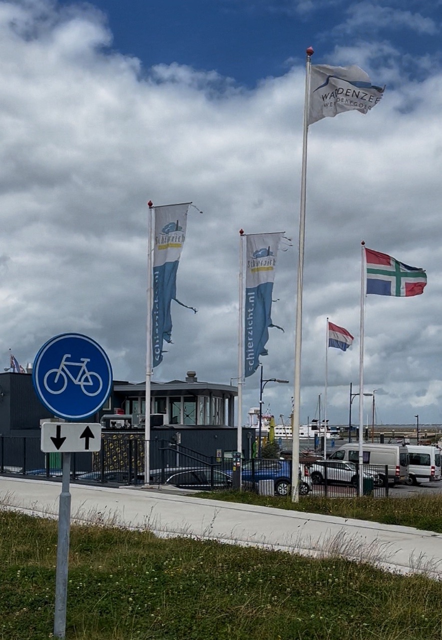 De stad uit, de wind in. Schakelen lukt niet dus maar gelukkig staat mijn verzet licht. Voor mijn doen moet ik een hele hoge cadans trappen om vooruit te gaan. Waarschijnlijk is het nog geen 80 rpm maar het voelt alsof ik in het luchtledige trap. Noord Groningen is open en schuilen voor de wind is er niet bij. Vooral het stuk naast het kanaal is ploeteren maar ook richting Zoutkamp kom ik niet vooruit. Het begint te regenen en voor de zekerheid ruim ik de powerbank en bekabeling op. Schakelen kan weer en dat komt geen moment te vroeg. Rondom het Lauwersmeer kom ik veel fietsers tegen. De fietsers die me tegenmoet rijden vliegen me ondertussen voorbij wat ook betekent dat ik nagenoeg stilsta. Richting het noorden wil het nog wel, maar op het moment dat ik de dijk op draai richting de laatste Gate sta ik echt nagenoeg stil. De vlaggen wapperen heel hard de verkeerde kant op en de wind is een ware Dutch Mountain. Geen laffe bedoeling. Naar mijn snelheidsmeter kijk ik liever niet, ik mag blij zijn als ik niet onder de tien per uur zak. Het einde van de dijk is zichtbaar maar komt nauwelijks dichterbij.