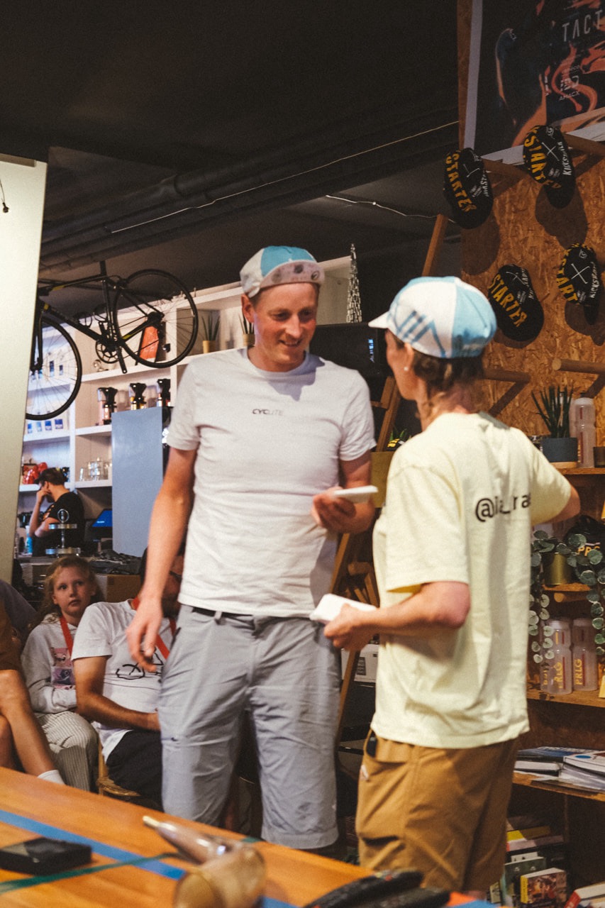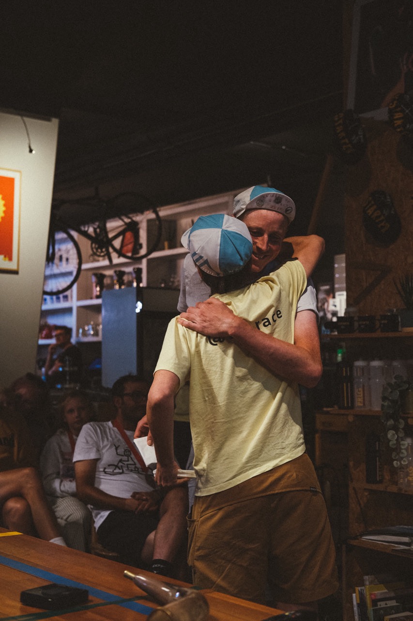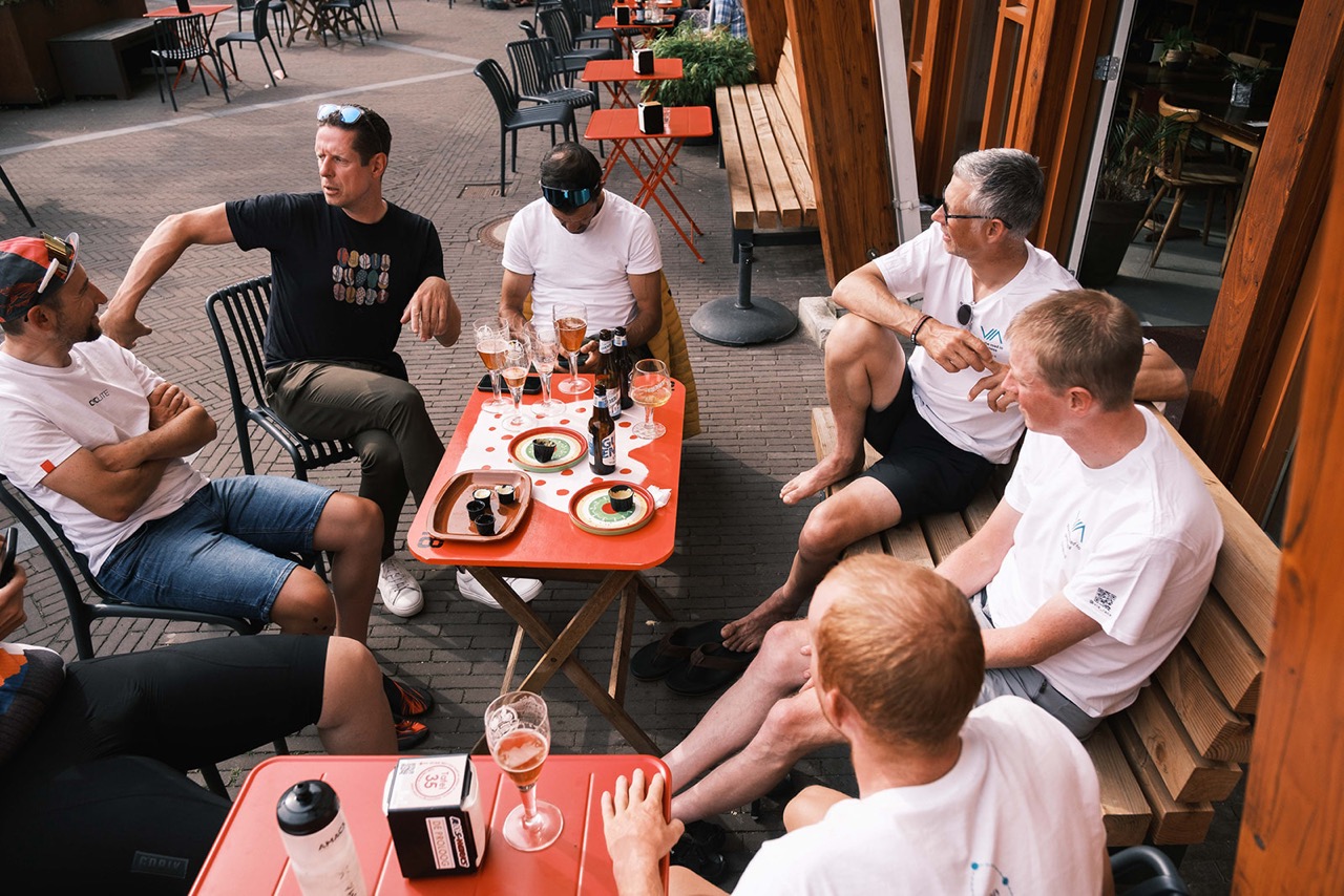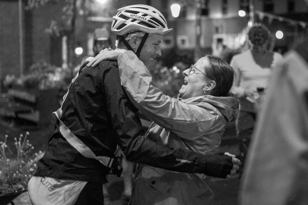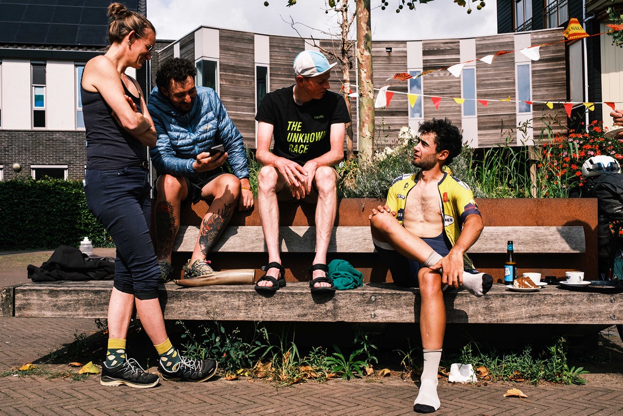 Na de korte afdaling rijd ik Amerongen in, ik zie de vlag van de race en draai het plein op waar de Proloog aan ligt. De hoorn wordt door Sam geblazen en de finish is daar. Ik geef Sam een high-five terwijl ik wil afstappen en val nog bijna op de grond. Daarna zie ik wie er allemaal voor me naar Amerongen zijn gekomen. Het is half elf, mijn moeder roept “weet je wel hoe laat het is” en ze heeft gelijk. Aan iedereen die er was: “weet je wel hoe laat het was?”. Ik bedoel “bedankt voor deze geweldige ontvangst!”. Na tien dagen, 14 uur en 26 minuten ben ik als zevende finisher over de streep gekomen. Wat een trip!
