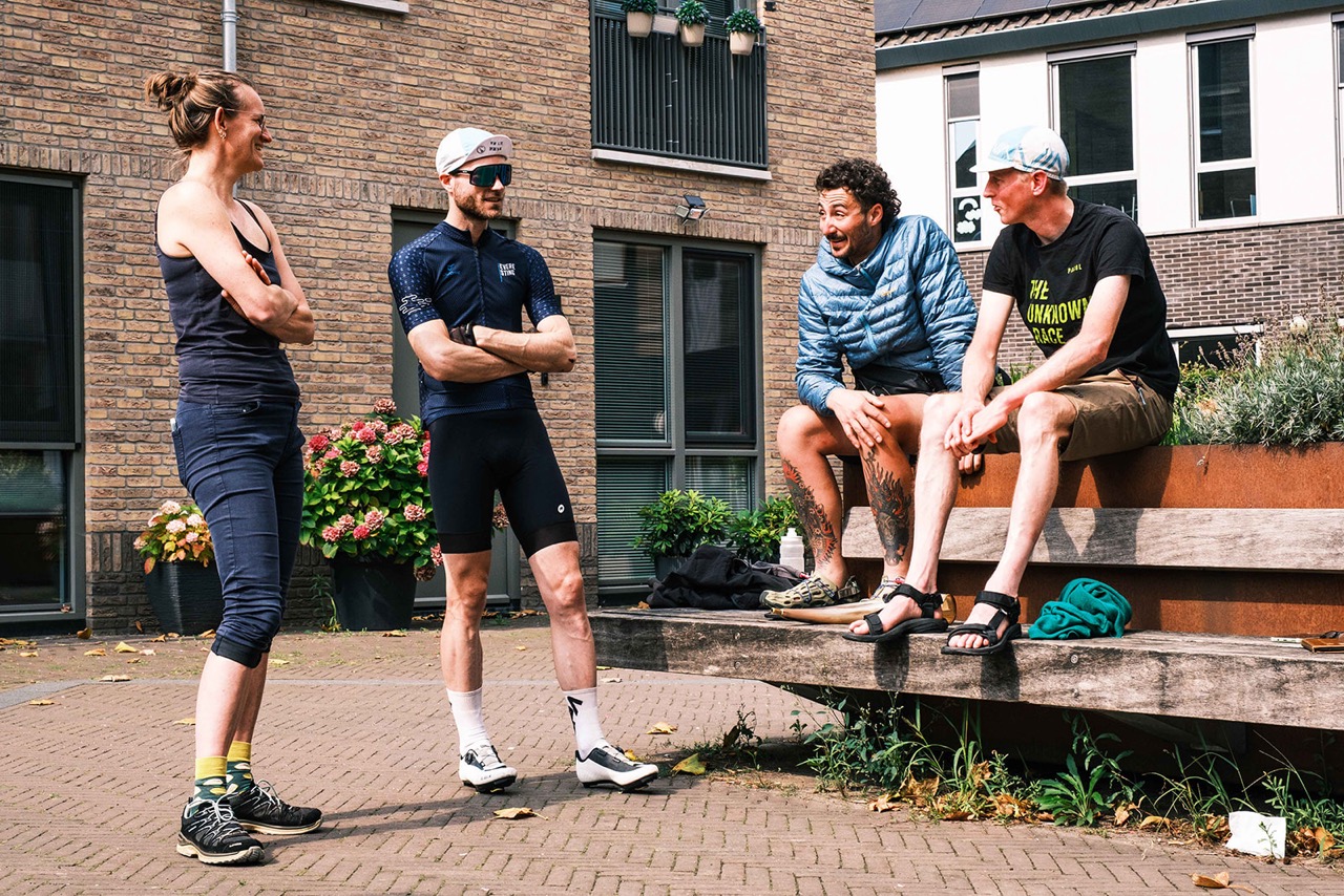 Na Barneveld ruik ik de finish, Renswoude staat op de borden en ik weet dat het dan niet ver meer is. Net na deze plaats komen teamgenoten Danny en Stan achterop gefietst om me aan te moedigen. Ze vertellen me dat ze me eigenlijk in Zwolle hadden willen aanmoedigen, maar ze me niet hebben kunnen vinden en al sinds die tijd kop over kop in de achtervolging op me zijn. Ze hebben moeten afzien om me te vinden, want naast fietsen om me in te halen hebben ze om de zoveel tijd stil moeten staan om mijn locatie en route te kunnen bepalen. Uiteindelijk hebben ze aan het eind van de dag bijna 200 km gereden om mij vijf minuten te kunnen zien. Hilarisch.