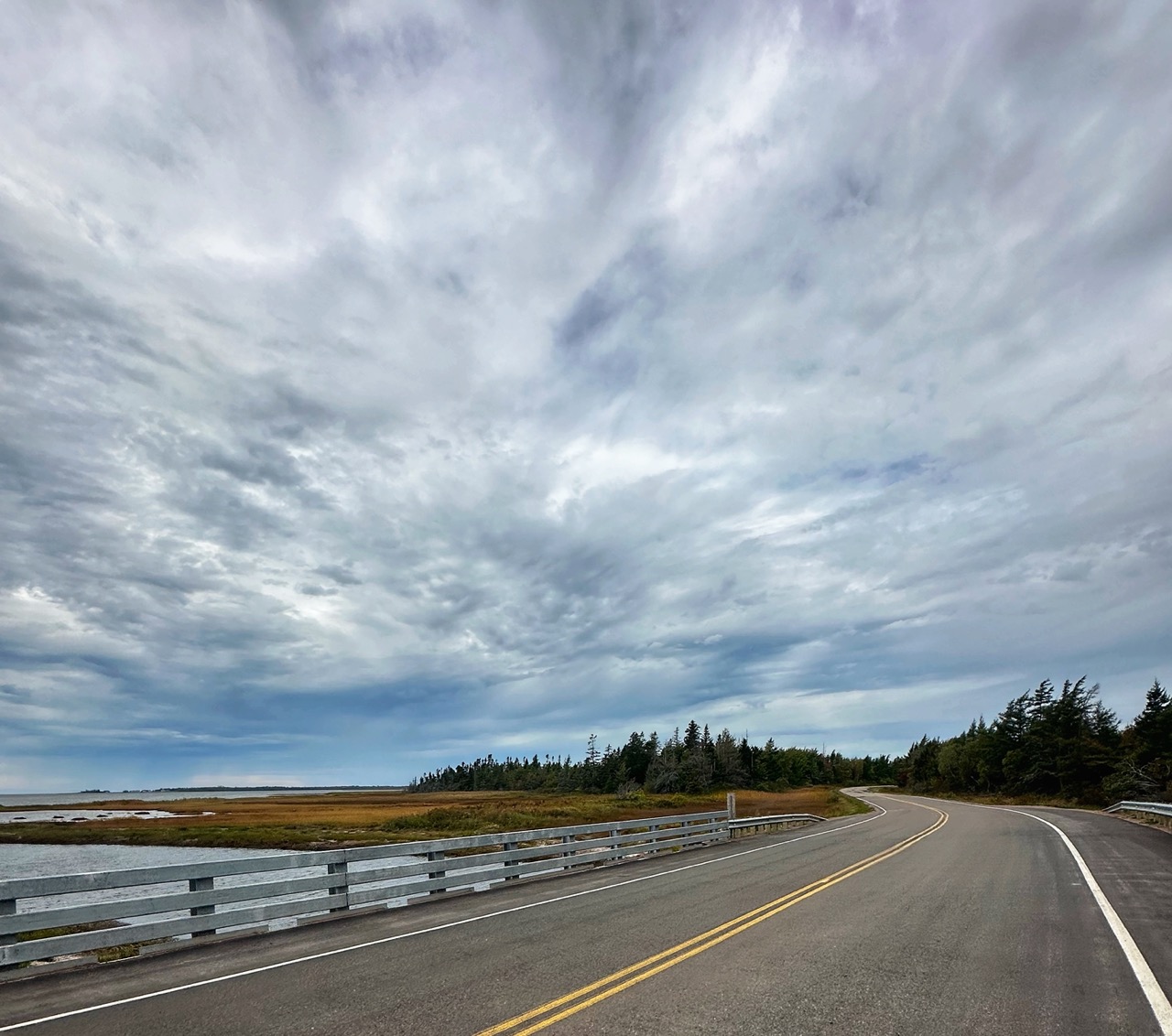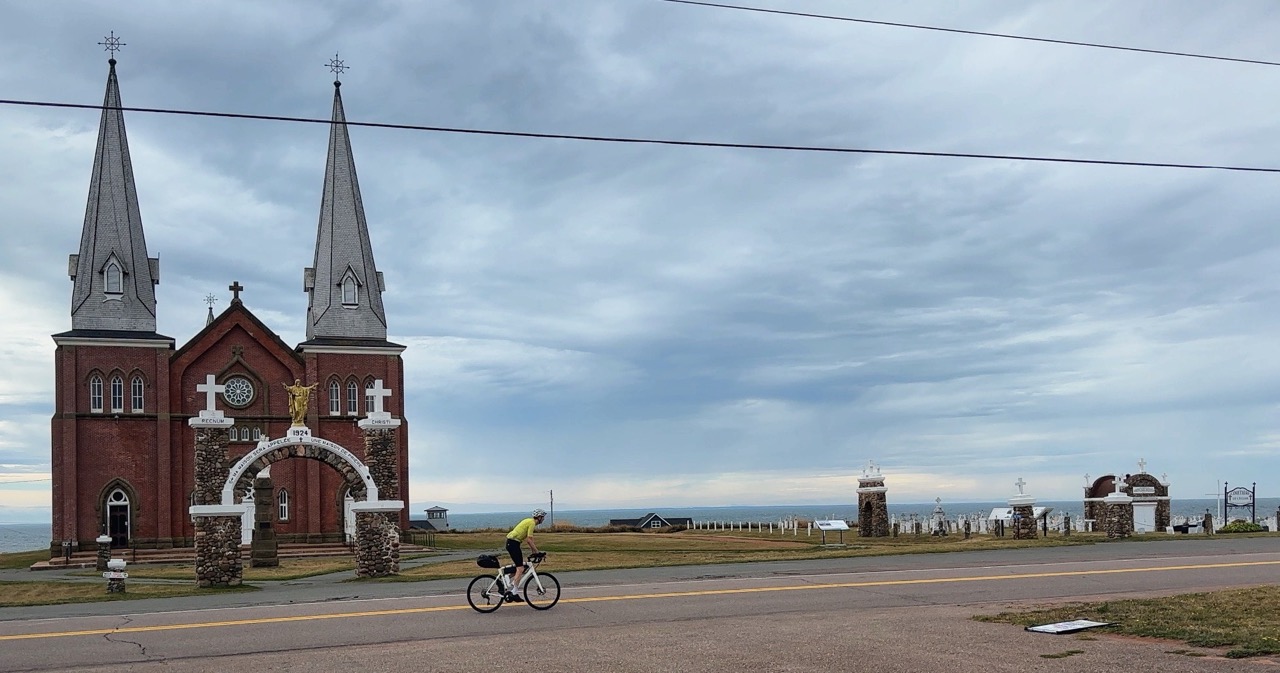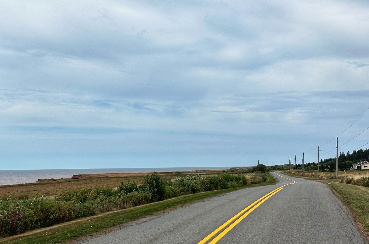 Na Summerside wordt het zoals ik verwachtte direct stil. Ik kom op een eenzame weg door een moerasachtig gebied. Wel bebost, maar met een natte ondergrond. Heel groen, maar ergens ook eenzaam. Af en toe steek ik een kabbelend riviertje over dat de zee in stroomt, maar over het algemeen is er bebossing om mee heen. Dit duurt tot Union Corner, waar ik weer langs de kust kom te rijden. Ook hier is het rustig, maar er is weer wat bebouwing en doordat er vooral graslandschap is, kan ik verder vooruit kijken. Hoogtepunt van dit stuk route is Our Lady of Mount Carmel Catholic Parish Church, een kerk op de rand van een klif.