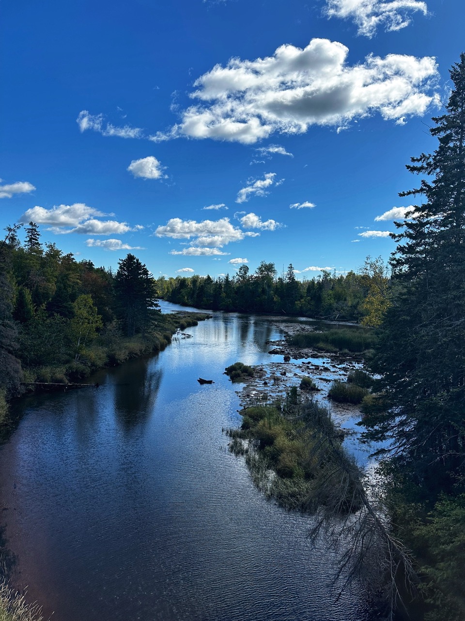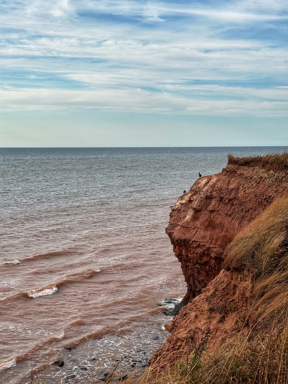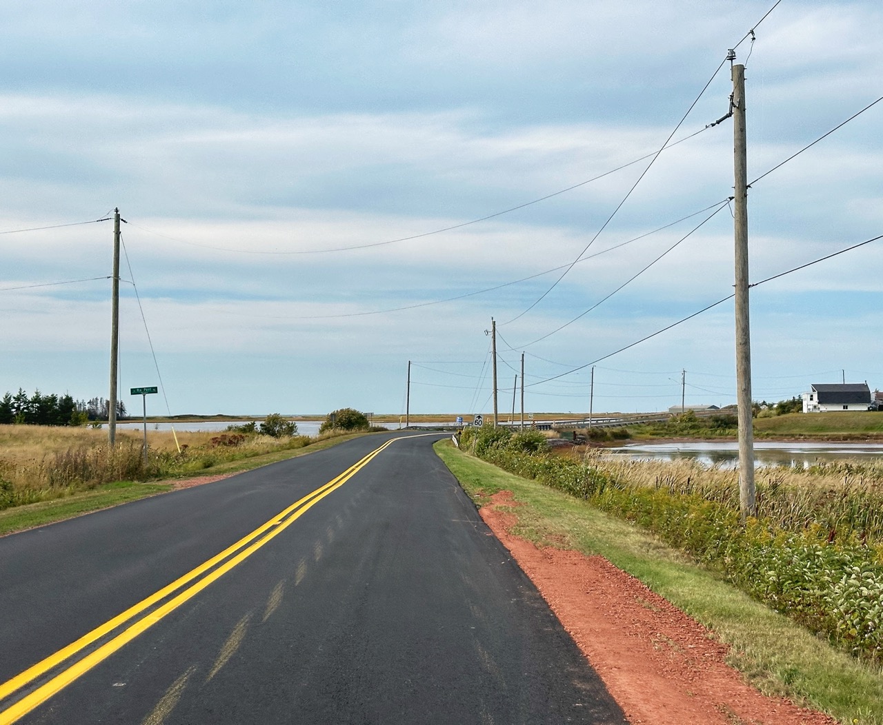 Na Summerside wordt het zoals ik verwachtte direct stil. Ik kom op een eenzame weg door een moerasachtig gebied. Wel bebost, maar met een natte ondergrond. Heel groen, maar ergens ook eenzaam. Af en toe steek ik een kabbelend riviertje over dat de zee in stroomt, maar over het algemeen is er bebossing om mee heen. Dit duurt tot Union Corner, waar ik weer langs de kust kom te rijden. Ook hier is het rustig, maar er is weer wat bebouwing en doordat er vooral graslandschap is, kan ik verder vooruit kijken. Hoogtepunt van dit stuk route is Our Lady of Mount Carmel Catholic Parish Church, een kerk op de rand van een klif.