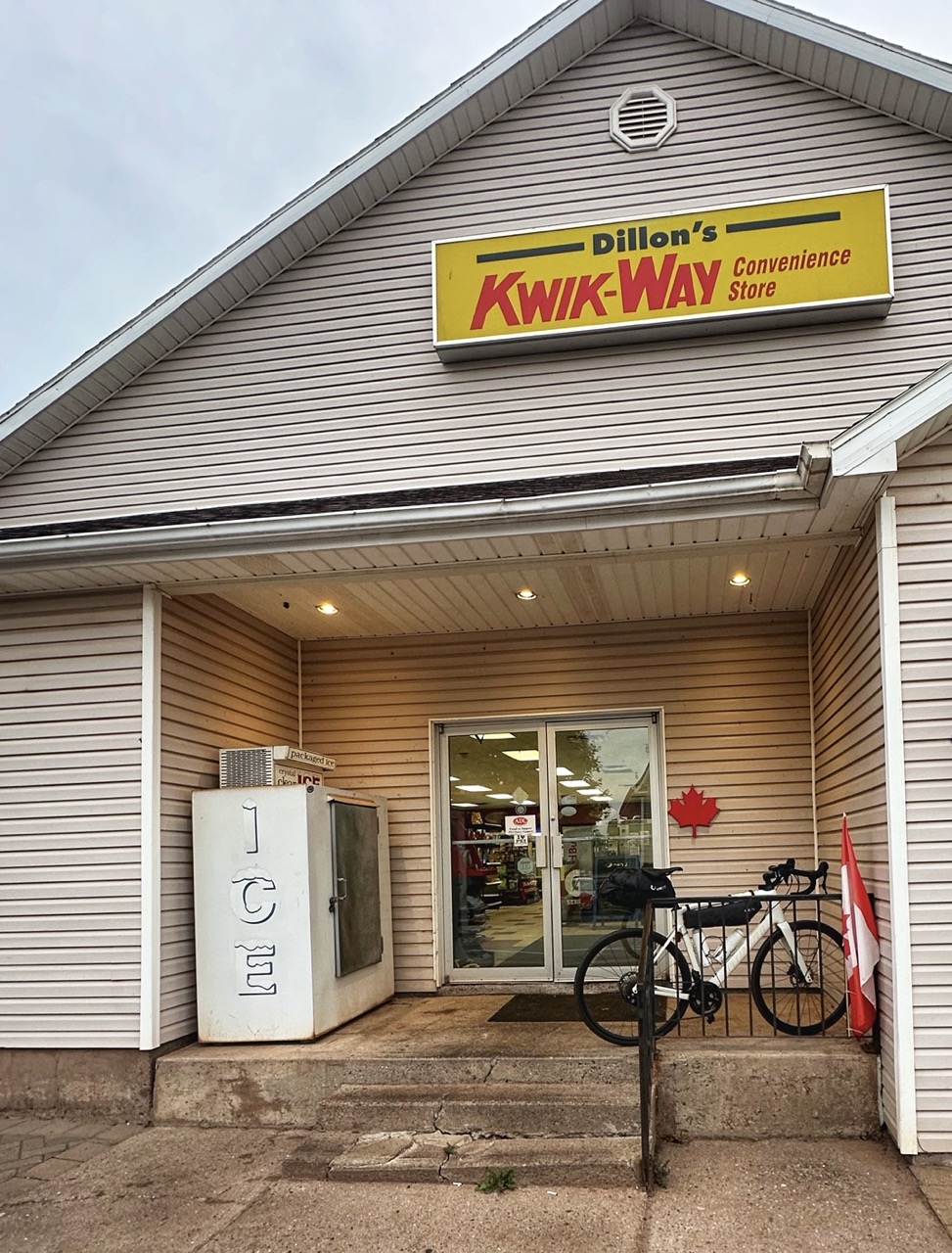 Wanneer ik de brug achter me heb gelaten rijd ik richting Summerside, de tweede stad van het eiland. Een plaatsnaam die mooi weer doet beloven, maar voor ik daar ben rijd ik door een mix van weilanden, bossen en kleine dorpjes. Ondertussen wordt het helaas eerder meer bewolkt dan dat er tekenen zijn van zomer. Het laatste stukje naar de stad moet ik helaas over de highway. Ik noem het bewust highway en niet snelweg want je mag hier met de fiets over de vluchtstrook rijden en het is niet te vergelijken met de drukte van de snelwegen zoals we die in Europa kennen, maar uiteraard rijd ik liever over rustigere wegen. Dan rijd ik Summerside in, ik besluit hier te stoppen en drinken aan te vullen, want ik weet dat er na deze plaats weinig mogelijkheden zullen komen. Het stadje zelf vind ik niet heel spectaculair, typisch Noord-Amerikaans. Groots opgezet, veel tankstations en fast food ketens op de in- en uitvoerwegen van de stad, en een relatief klein centrum. Ruim 115 kilometer staat er op de teller en ik stop bij een tankstation aan het uiteinde van de stad. Bijvullen voor de grote leegte.
