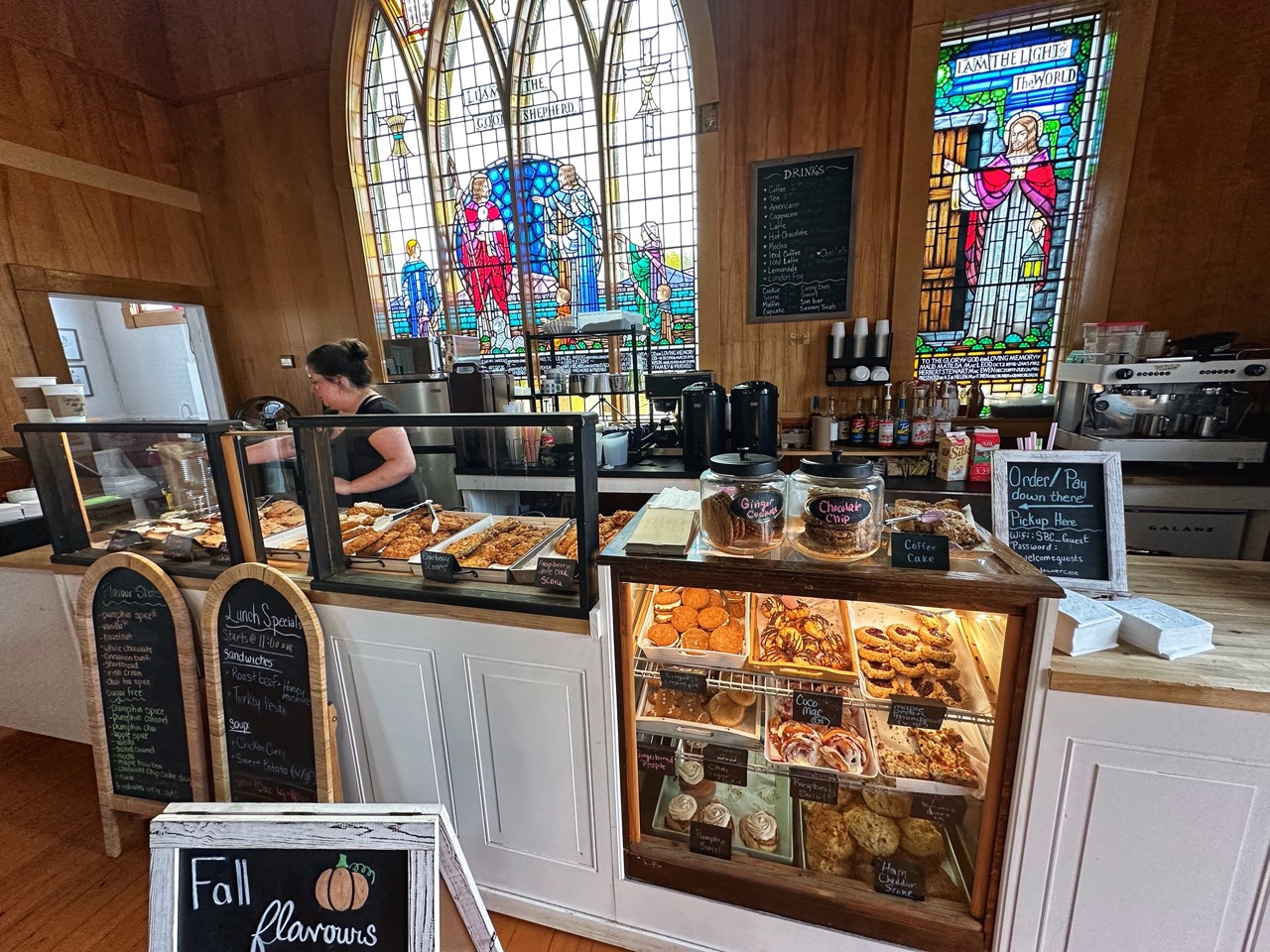 Gelukkig klaart het op en kom ik aan de noordkant mooiere stukken eiland tegen. Rondom Cabot Provincial Park en New London Bay komt er meer glooiing in het landschap, wordt de kust weer zichtbaar en in vele kleine mini-baaitjes zijn prachtige havendropjes. De weg droogt door de wind snel op en ik ben de regen van weleer alweer vergeten. In Stanley Bridge kom ik een bakkerij tegen, ik koop een kaneelbroodje en koffie als lunch en neem een zwik aan koekjes meer voor on the go.