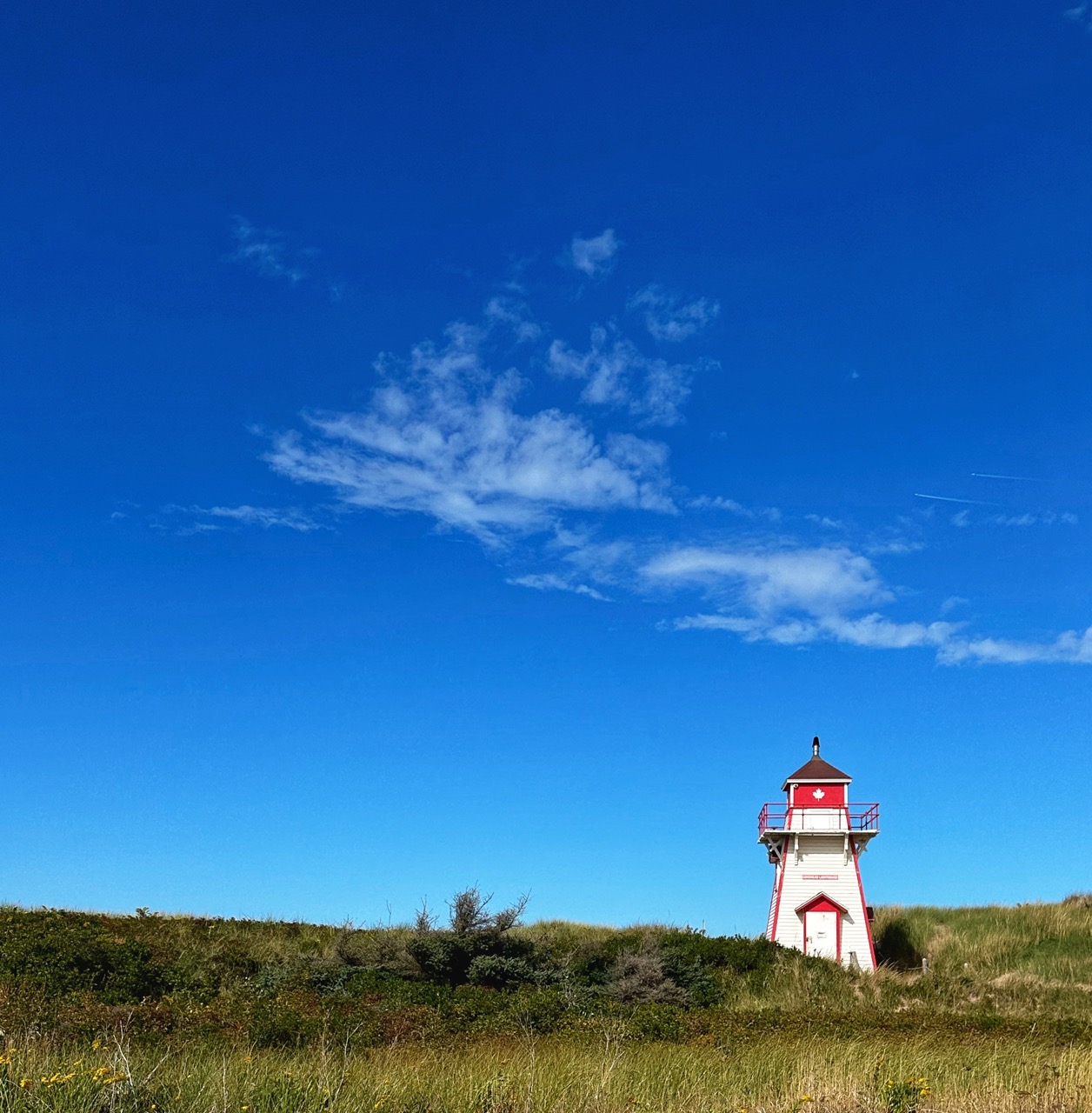 Wat opvalt in dit gebied zijn de Arcadian vlaggen die mensen rondom hun huizen hebben hangen. Het is de Franse vlag met een ster erin en de uitleg is dat het een herinnering is aan het Franse erfgoed én het moederland van de Arcadians. Van oorsprong was PEI namelijk een Franse kolonie; ze werkten samen met de inheemse bevolking tot de Engelsen het overnamen en de alle Arcadians werden verbannen naar Louisianna, waar ze cajuns werden. Een stuk geschiedenis waar ik tot dit rondje eigenlijk niets van wist.