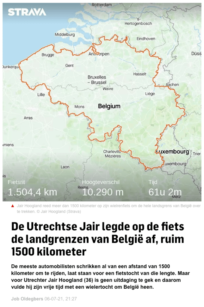 “De Utrechtse Jair legde op de fiets de landgrenzen van België af, ruim 1500 kilometer“