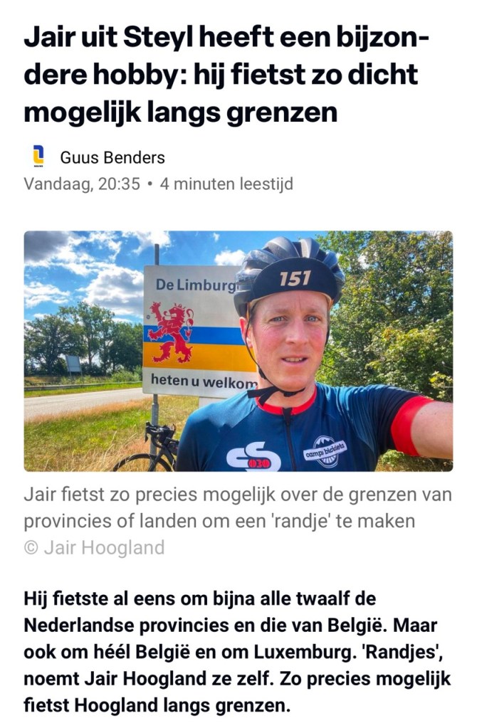 “Jair uit Steyl heeft een bijzondere hobby: hij fietst zo dicht mogelijk langs grenzen”